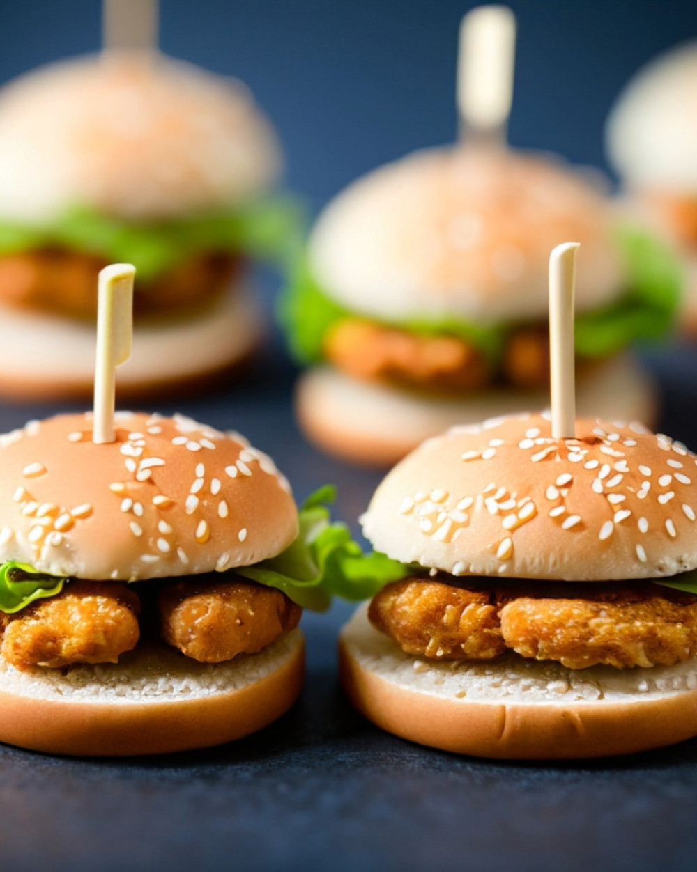 Plateau de Mini burger au poulet et aux oignons, garni d'une délicieuse sauce à la moutarde et au miel, ketchup, 15 pièces