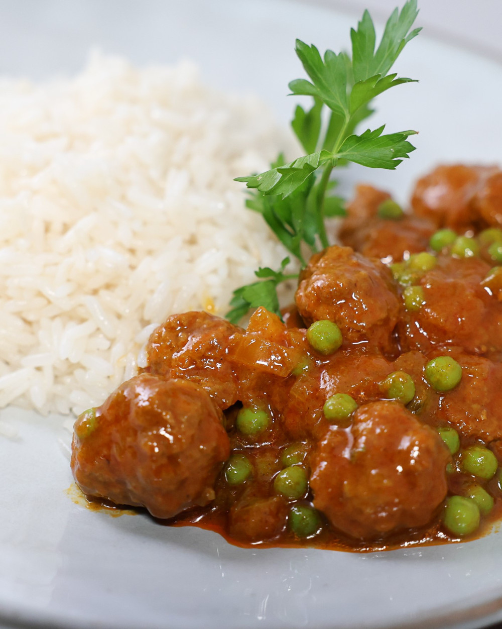 Mini Boulettes de Viande faite maison avec petits pois et carottes, semoule, et une sauce bien mojitée